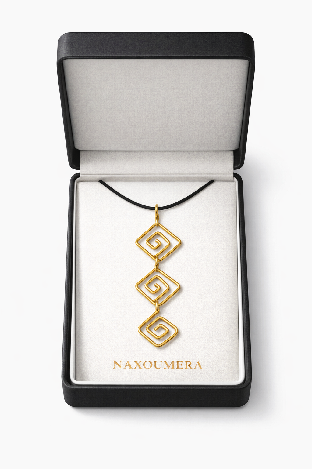 Meandra est un collier d’inspiration grecque qui séduit par la pureté de ses lignes et l’élégance de sa géométrie. Son pendentif, composé de trois motifs losangés finement travaillés, évoque avec subtilité l’esthétique athénienne et la noblesse des formes antiques. À la fois structuré, léger et raffiné, il attire le regard par son équilibre harmonieux et son charme intemporel.