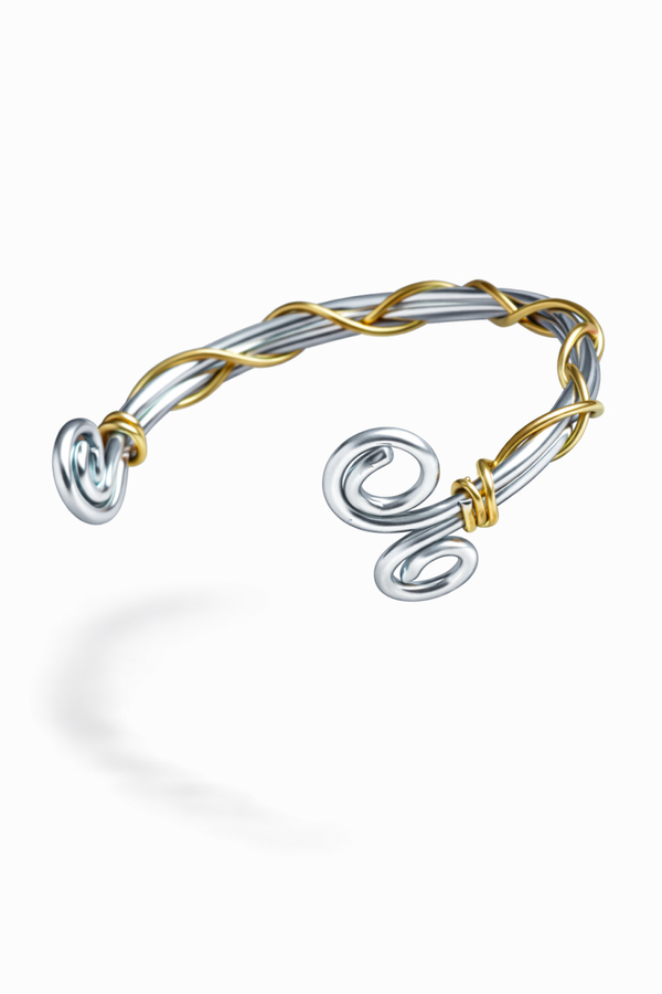 Chrysilios est un bracelet d’exception qui joue sur l’harmonie de deux teintes contrastées, subtilement entremêlées dans un équilibre parfait. Son design en spirale, inspiré des formes antiques grecques, évoque le mouvement, la continuité et l’infini.