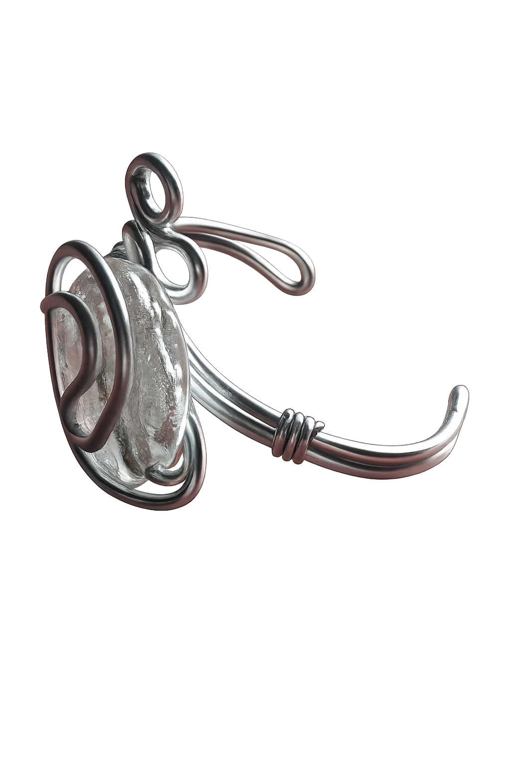 Chaque courbe semble suivre un mouvement naturel, comme façonnée par le temps et le geste. La pierre centrale, aux nuances subtiles et à la texture unique, capte la lumière et révèle toute la personnalité du bijou.