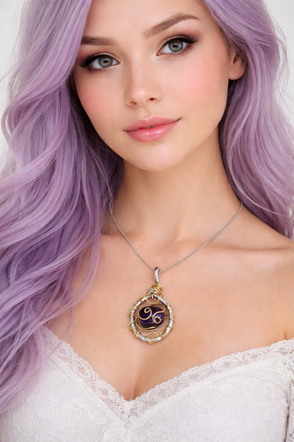 Un collier au charme magnétique, où la pierre violette devient le cœur vibrant de la création.