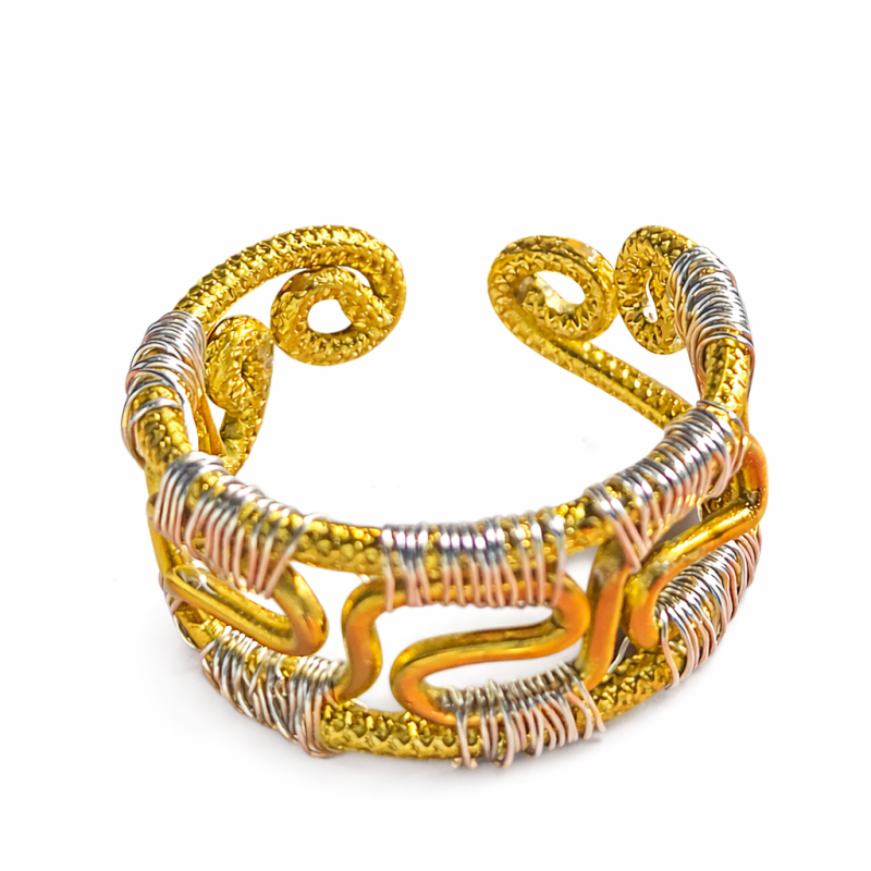 Κατασκευασμένο στο χέρι, κάθε κομμάτι αποκαλύπτει μια λεπτή ισορροπία ανάμεσα στη δύναμη και την ευαισθησία. Τα μεταλλικά νήματα πλέκονται με ακρίβεια, δημιουργώντας μια ζωντανή σύνθεση, σχεδόν σε κίνηση.